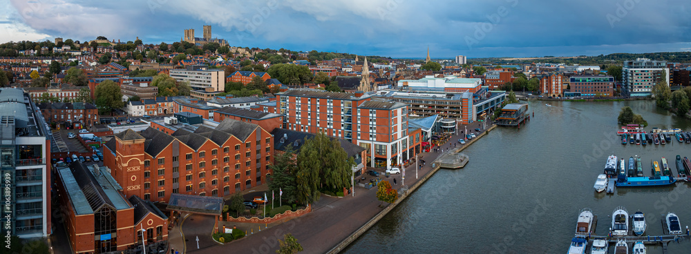 View of Lincoln Cathedral, a Church of England cathedral in Lincolnshire, England