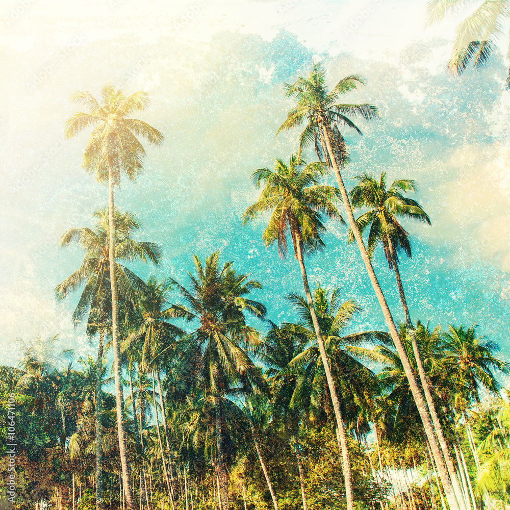 Palm Trees Jungle Sky Toned Vintage Shabby Effect