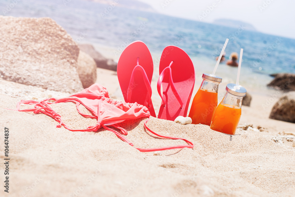 Beach Pink Flip Flops Bikini Orange Juice Holiday