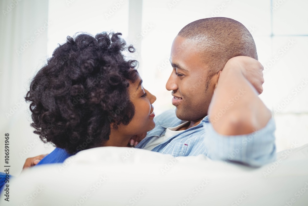 Portrait of smiling couple on the sofa