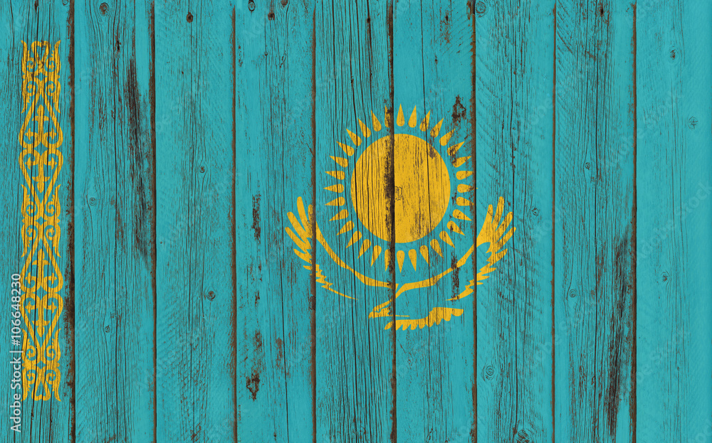 Flag of Kazakhstan painted on wooden frame