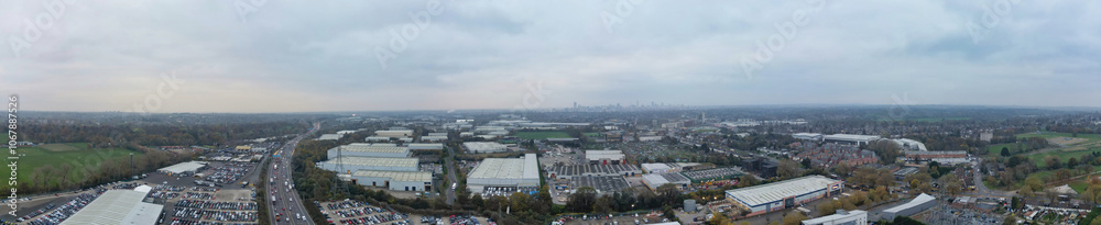 Panoramic Birmingham Perry Barr Central City. It is a major city in England, West Midlands Region of United Kingdom. Drone's Camera Footage During Mostly Cloudy Early Morning on November 4th, 2024