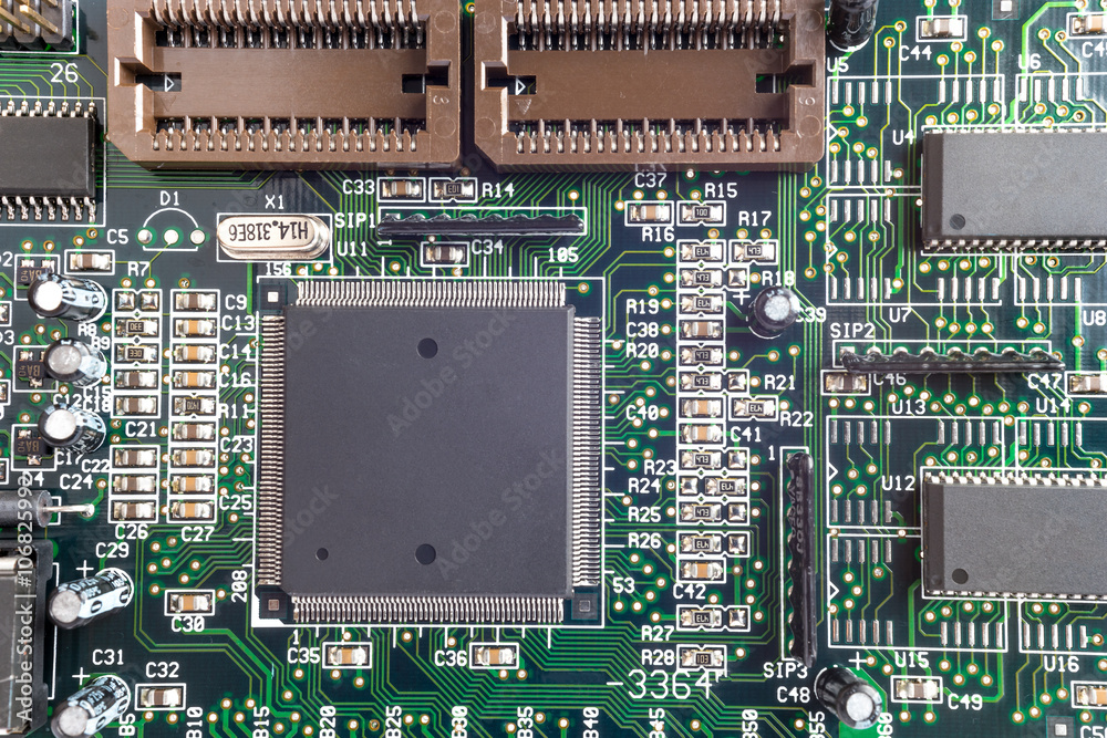 Close-up on a CPU microchip on a scheme