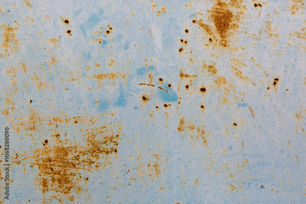 Verwittertes Metall mit Rostflecken und verblasstem Lack in blau