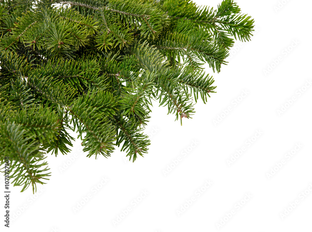 Christmas tree branch isolated on white transparent, Xmas spruce, green fir pine twig, PNG.