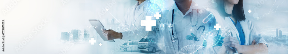 Healthcare and medical. DNA, Professional doctor treatment in hospital, Professional teamwork and patient trust, Emergency health care. Medical business, Medical service with digital on network.