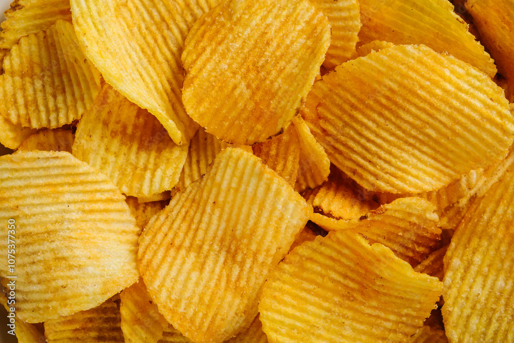 Wavy potato chips close-up.