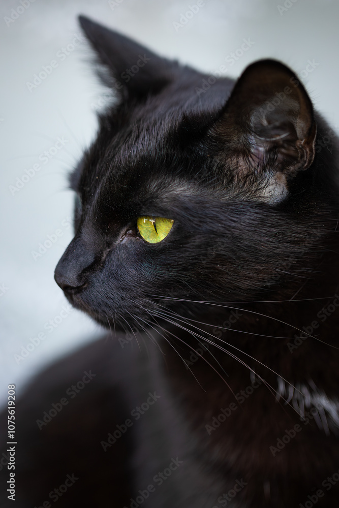 Black cat with shiny fur
