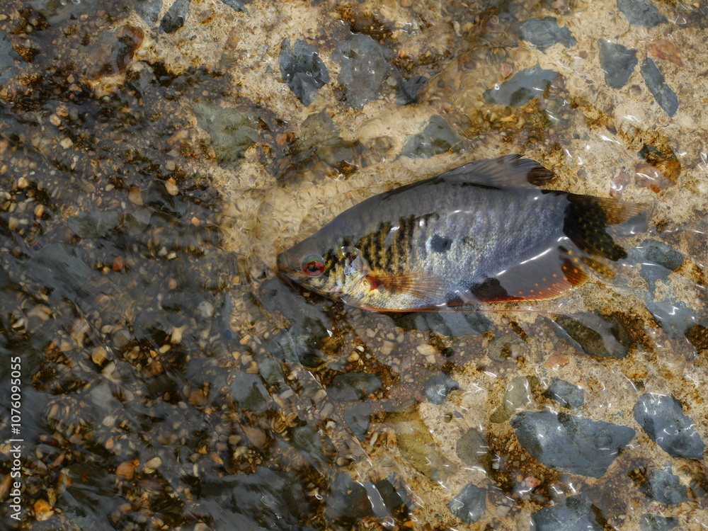 Three spot gourami fish in clear flowing water, Important aquacultured freshwater species in Thailand