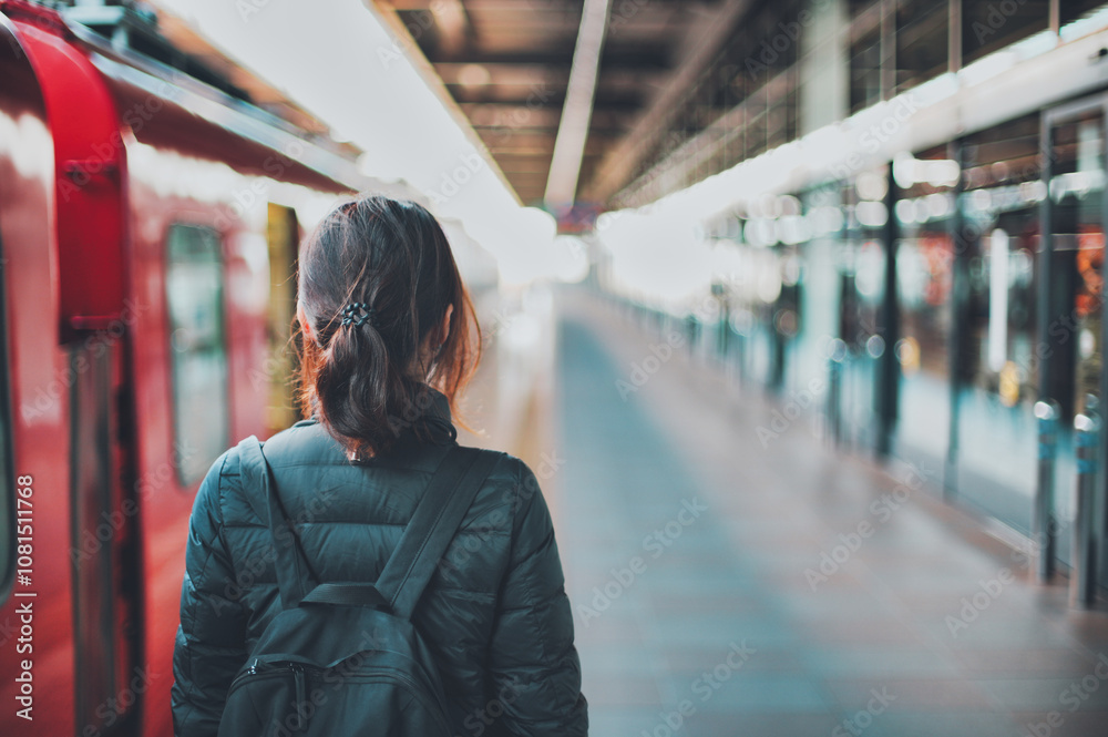 列車と女性の後ろ姿