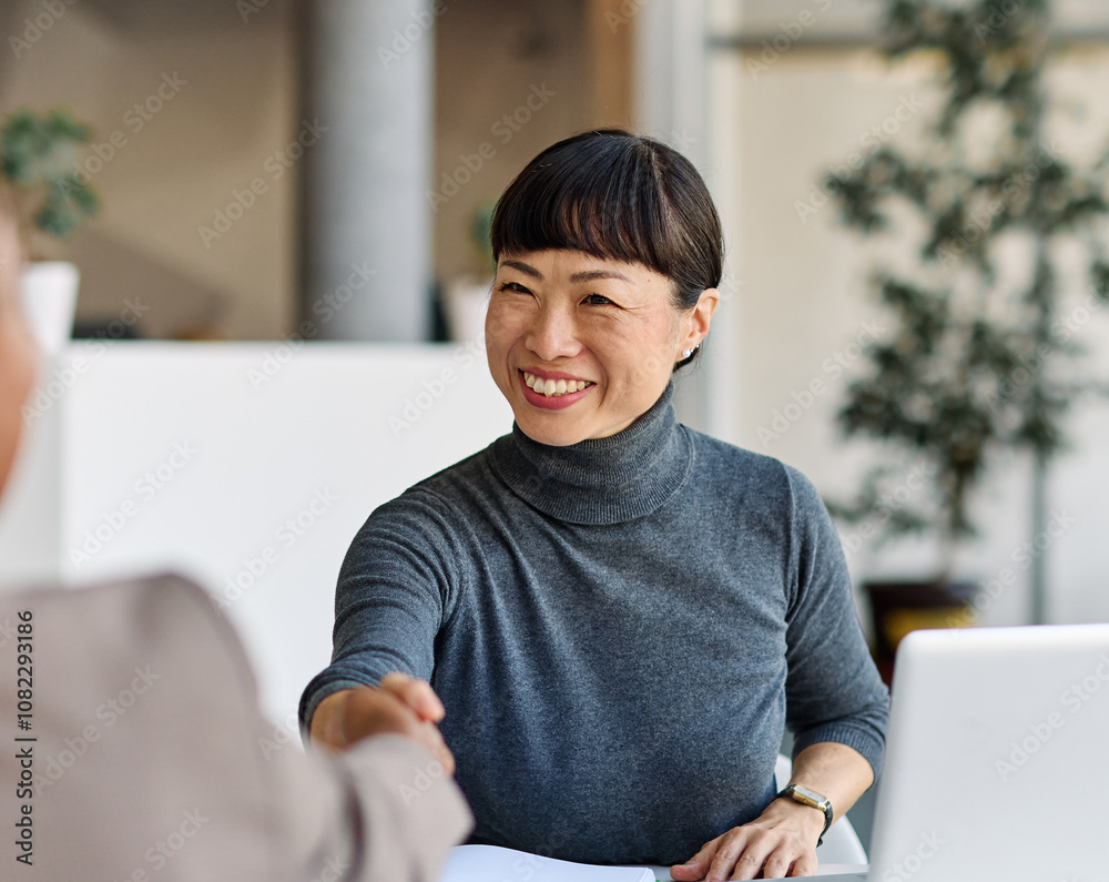 business meeting businesswoman teamwork woman handshake agreement deal hand shake shaking man congratulating colleague group contract seminar conference work office