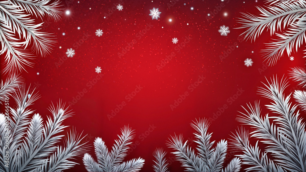 Red background with frosty silver branches