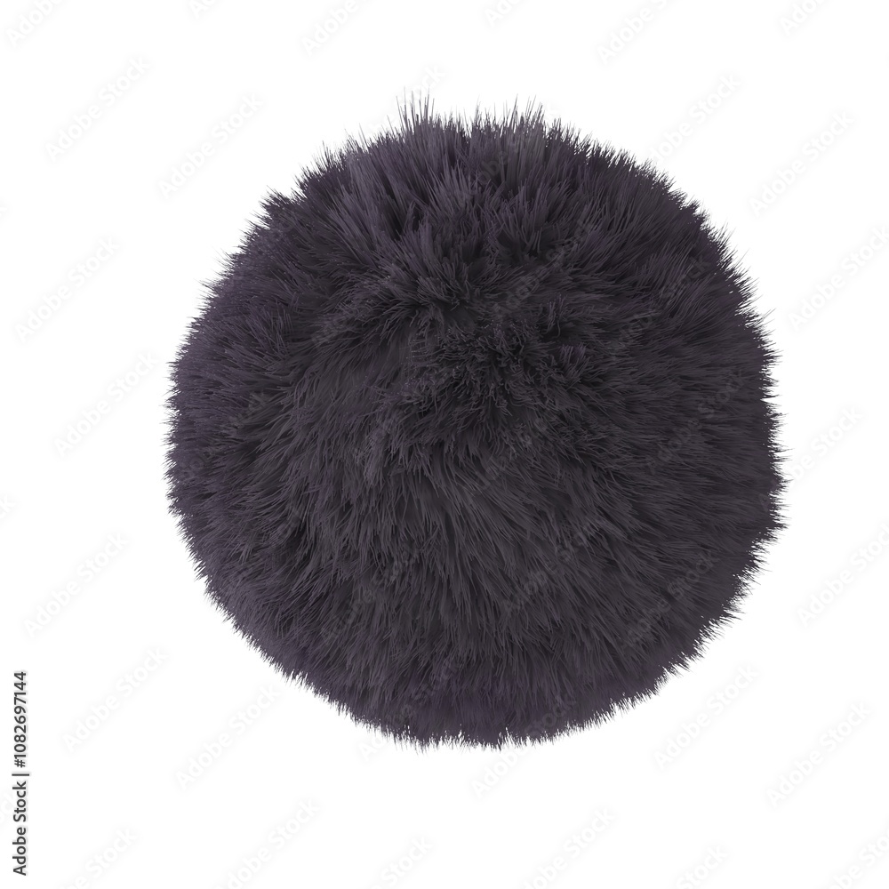 Close-up 3D render of a hairy fur ball with soft, fluffy texture on white background