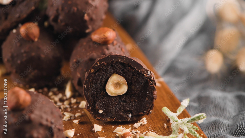 Dark chocolate truffles with hazelnuts