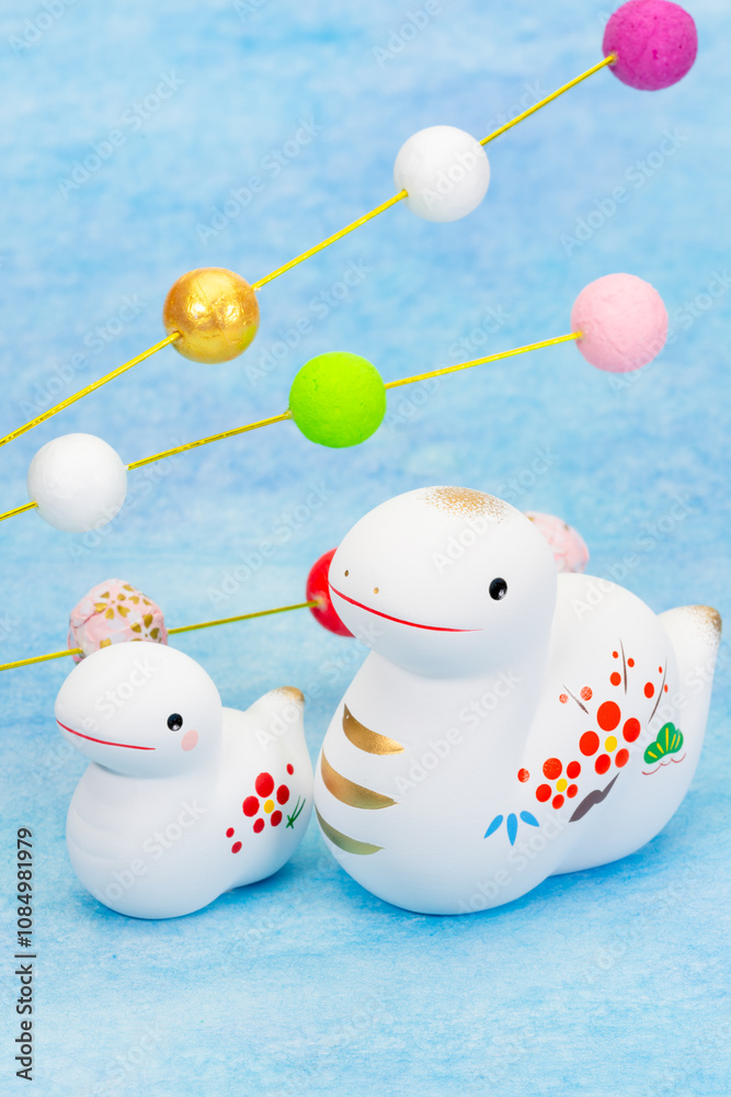 写真素材:令和7年・2025年の干支は巳(み)(蛇)巳年の年賀状素材(和、和紙、千代紙、お正月小物等)