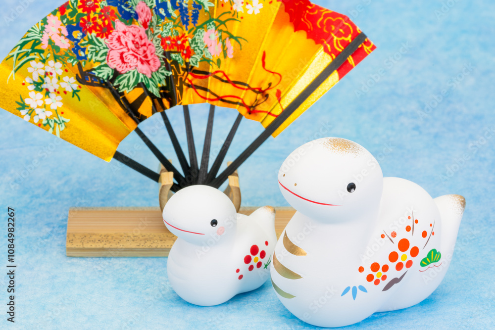 写真素材:令和7年・2025年の干支は巳(み)(蛇)巳年の年賀状素材(和、和紙、千代紙、お正月小物等)