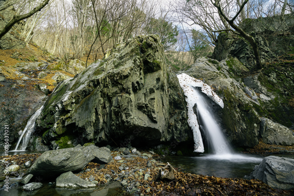 氷が残る初春の乙女の滝