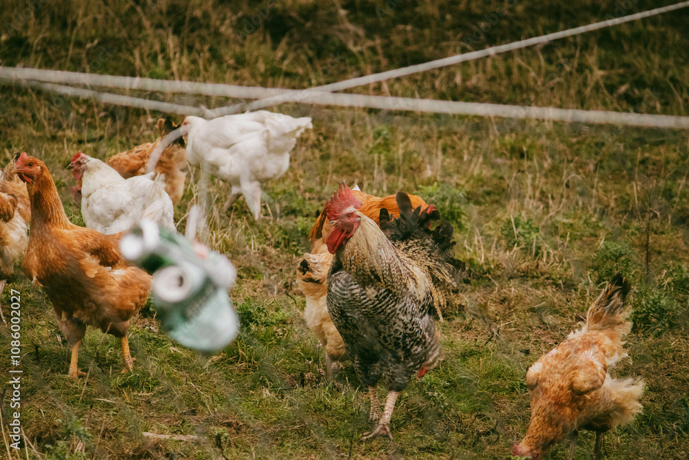 Kogut wsród kur na gospodarstwie wiejskie życie jajka