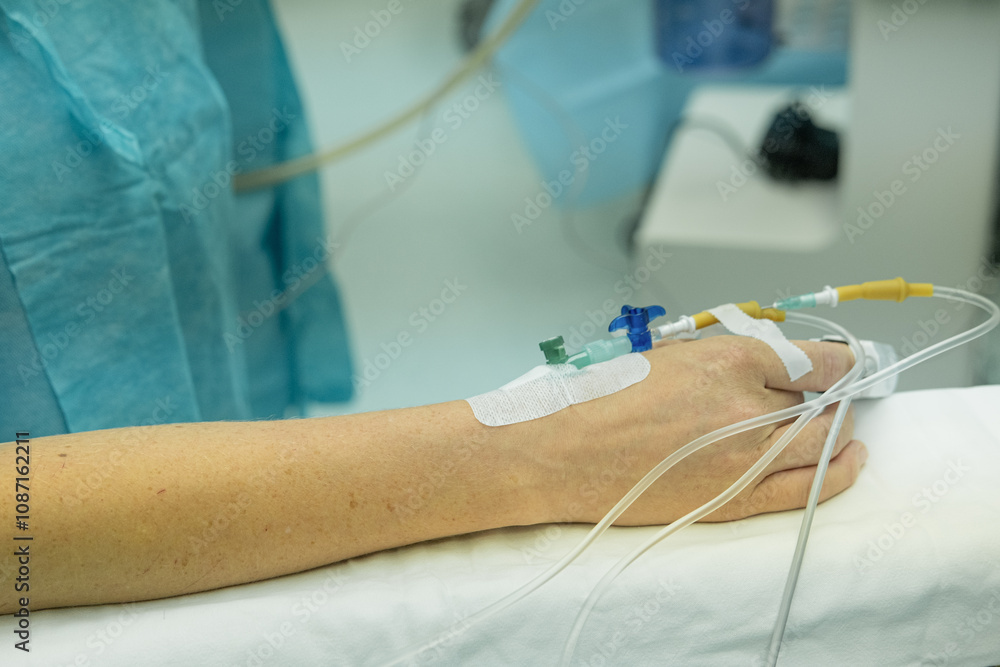 Operating room. Catheter in hand on the operating table