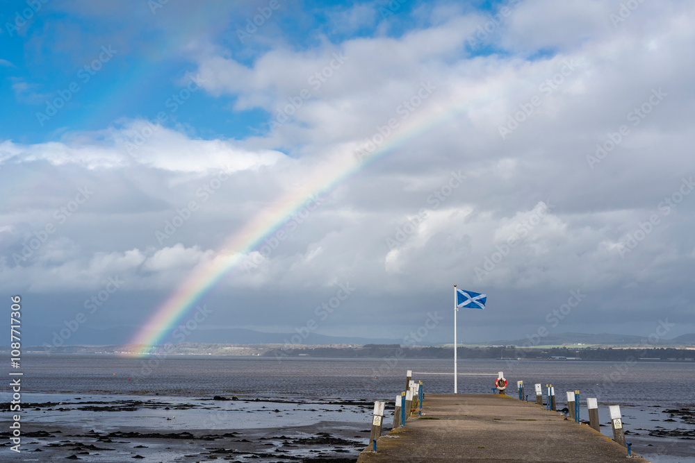 Blackness bay with rainbow, Scotland.