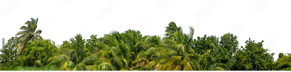 Coconut palm trees in summer on transparent background with clipping path and alpha channel, high resolution.