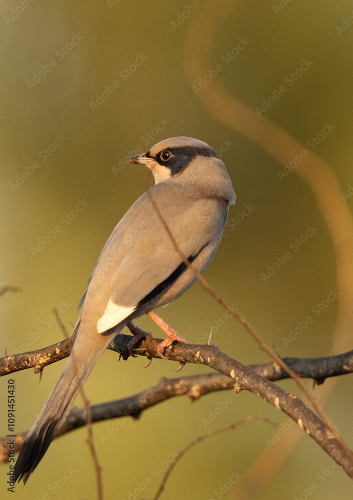 A Grey Hypocolius perched on acacia tree in the morning hours, Bahrain