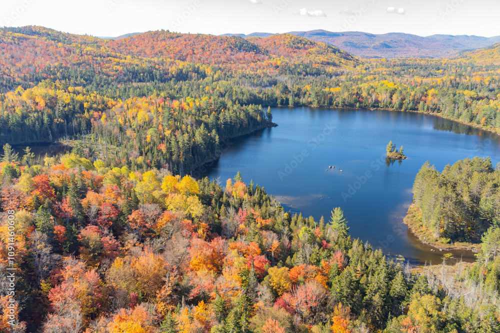 Fall in Quebec over a lake