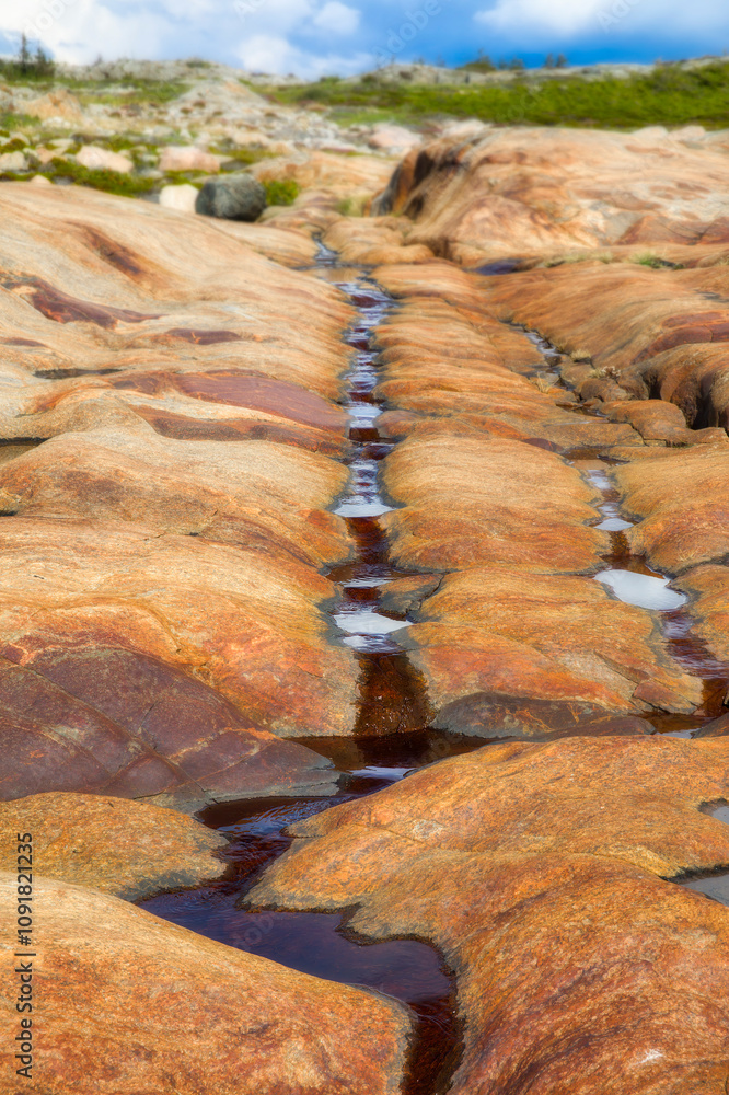 From Herfoel in Hvaler, Norway, with Granite Rock and a Small Water Stream Runnig towards the Ocean