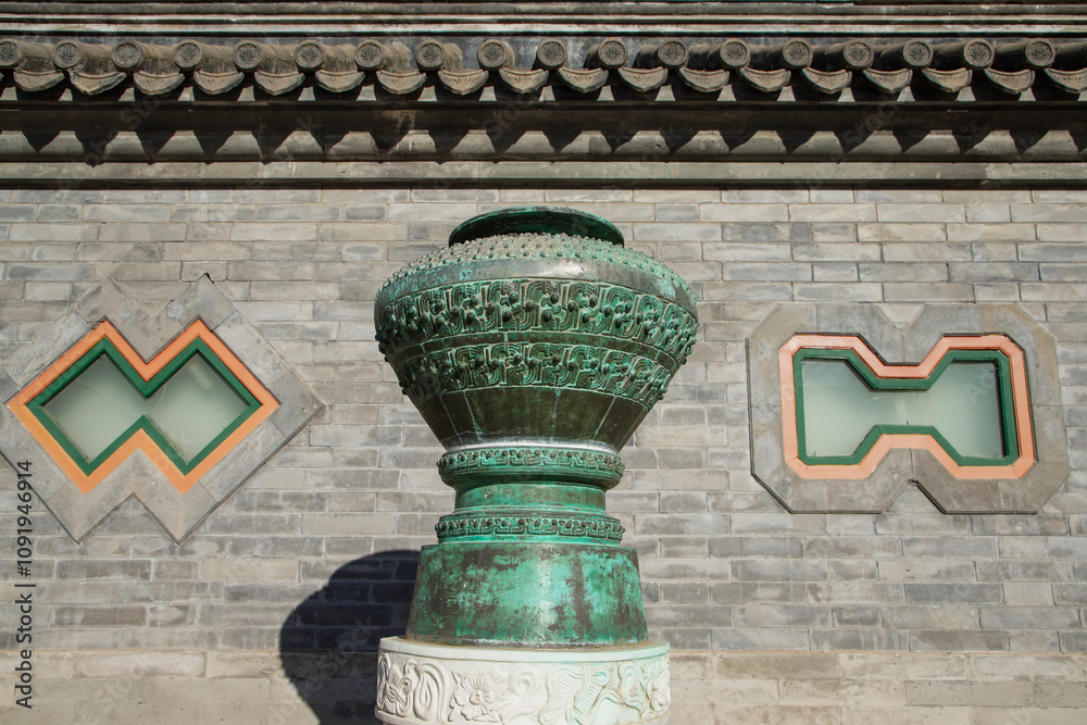Bronze cultural relics on display outside the gate of Summer Palace Museum in Beijing.