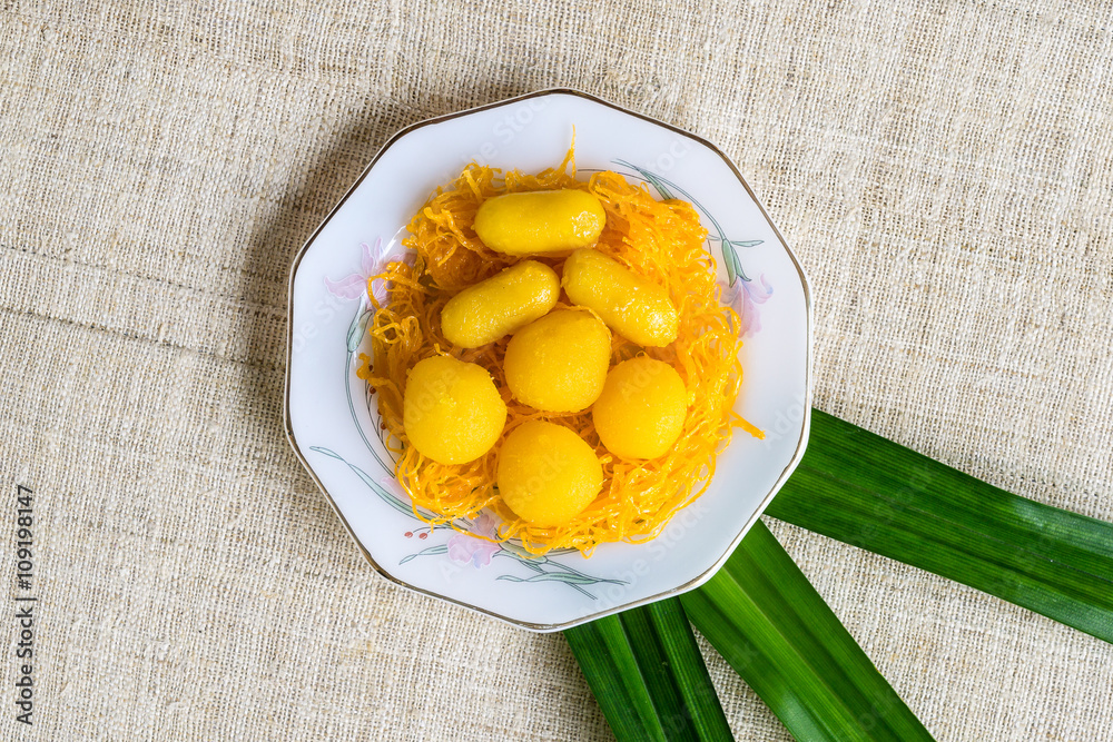 Thai Dessert - Sweet egg floss and egg yoke fudge balls cooked i