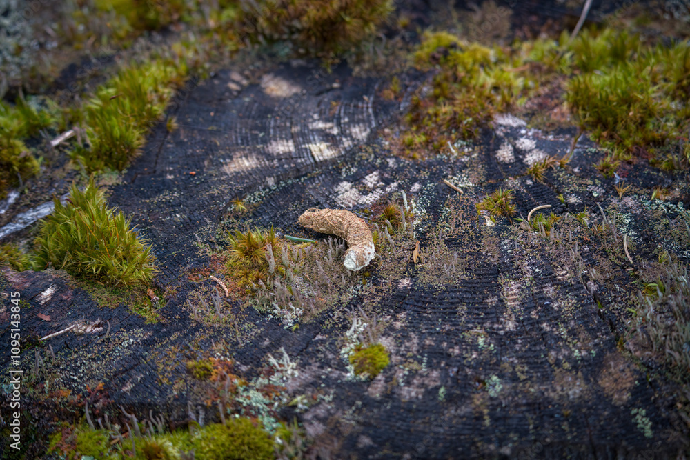 this is the droppings from the capercaillie, tetrao urogallus, in autumn in a solid consistency