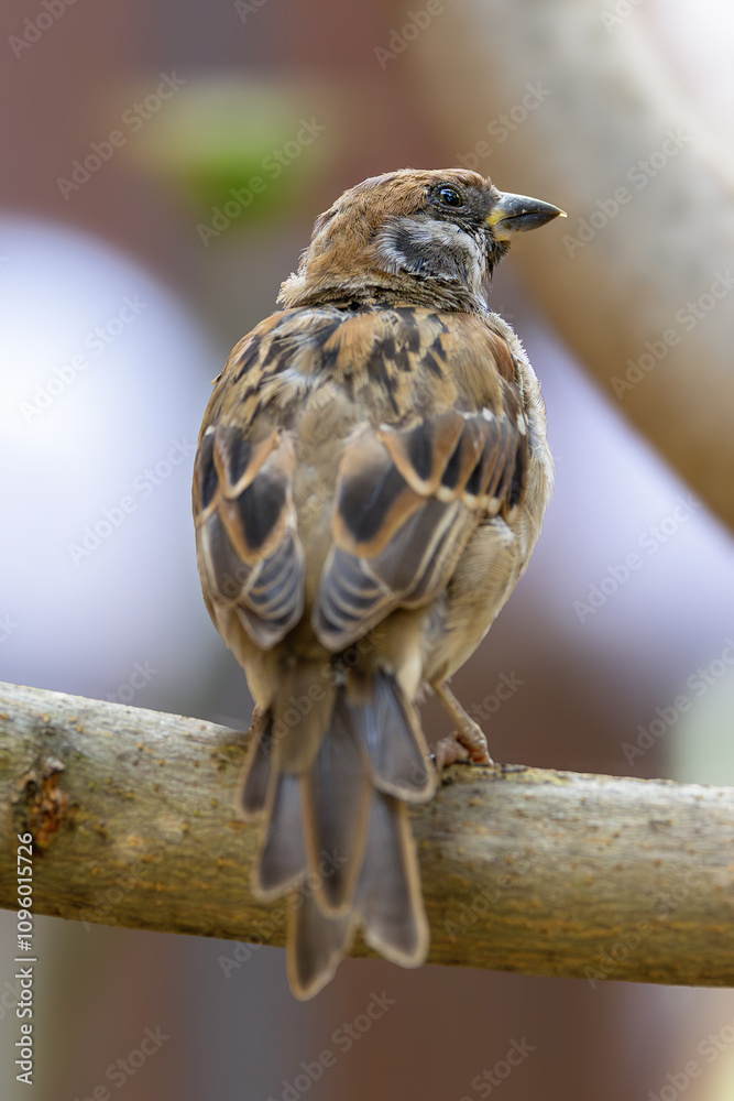 male tree sparrow perched in an urban garden