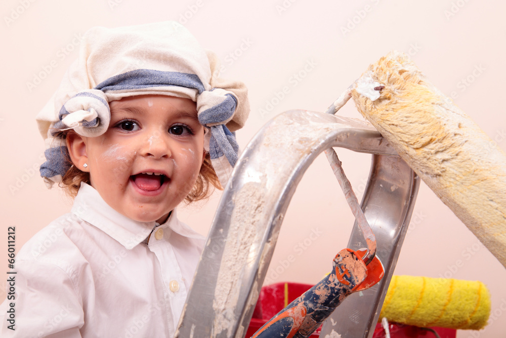 Artist Paints on the Floor in His Cozy, Bright Studio, Surrounded by His Completed Works. The Light-Filled, Inspiring Environment Encourages Him to Create New, Unique Pieces of Art in a Relaxing Space