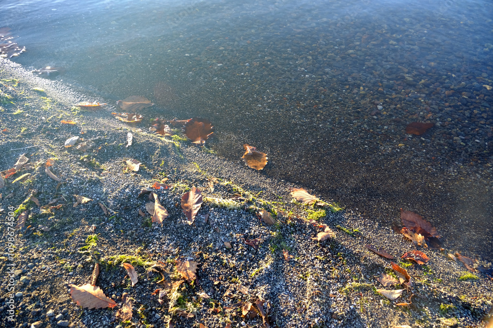 屈斜路湖の湖縁と枯れ葉 北海道の自然