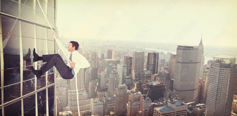 Composite image of businessman pulling a rope