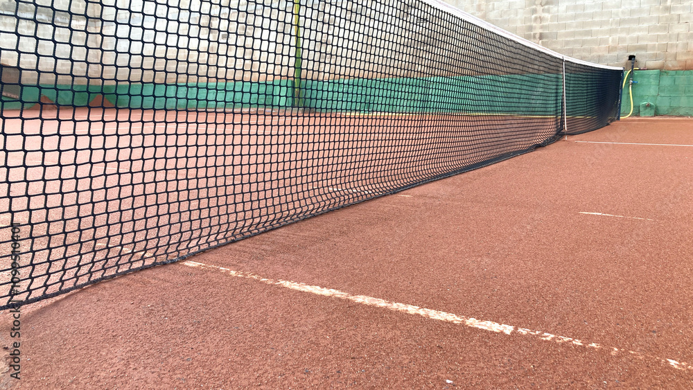 Detalle de red en una pista de tenis de tierra batida