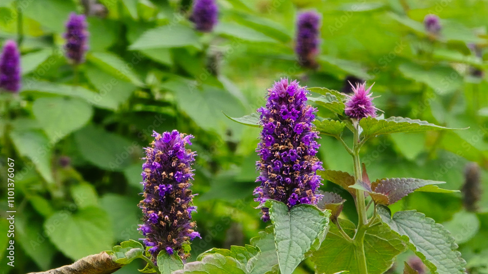 Violet vAsian scented nettle deep autumn in the park Flowers in late autumn in the park