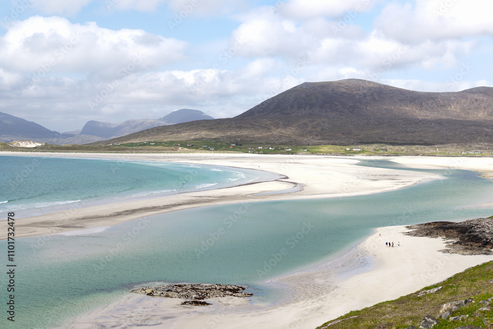 Luskentyre Bay, Harris, Outer Hebrides. Looking north from Seilebost across tidal white sands to Beinn Dhubh mountain