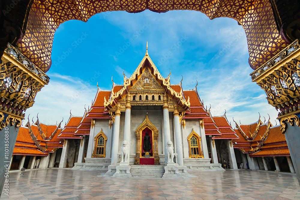 Wat Benchamabophit Dusitvanaram or White Marble Temple is Famous in Bangkok Thailand.