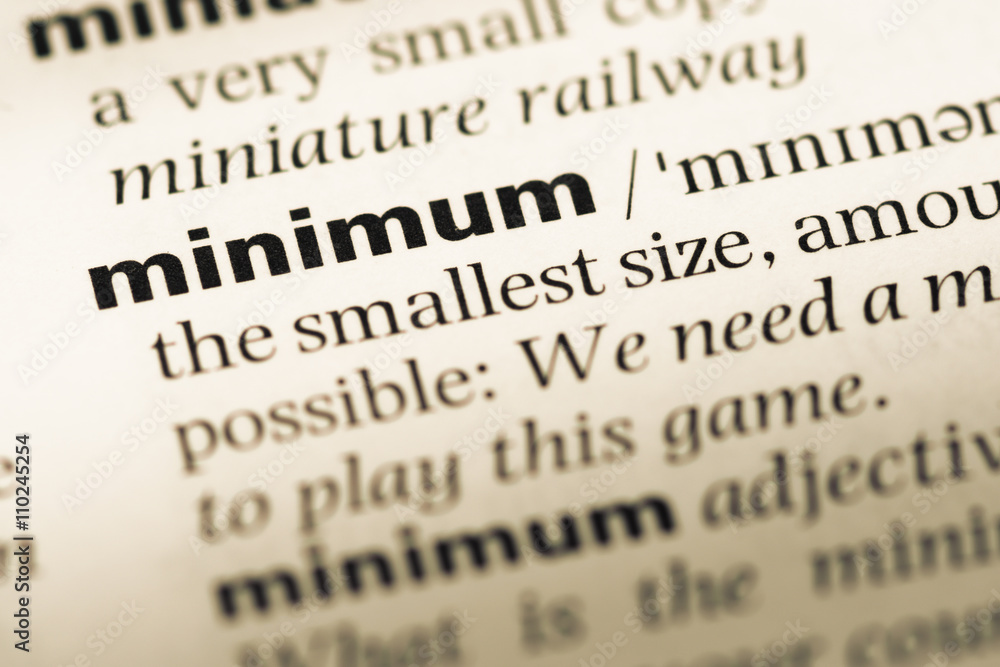 Close up of old English dictionary page with word minimum