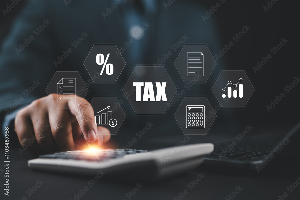E-Filing, Taxpayer using a laptop to file taxes personal income, Tax Return form online for tax payment. Government, state taxes. Data analysis, paperwork, reports. Calculation tax return.