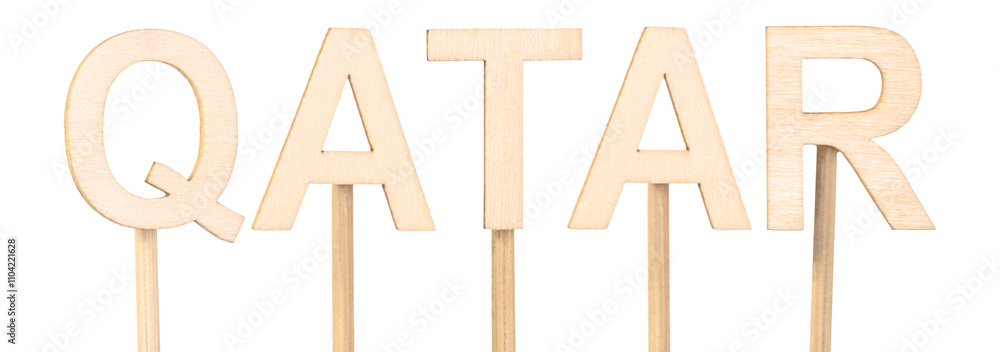 Wooden letters forming Qatar, ideal for craft projects. Countries of the world.