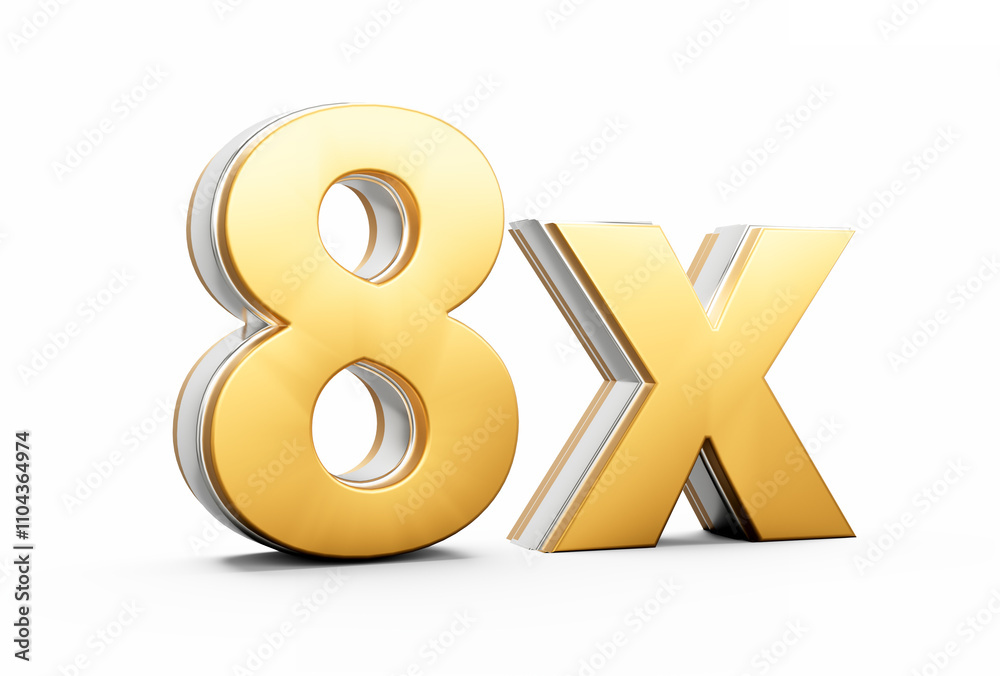 Golden Shiny 8x Symbol Eight x Icon For Advertising And Dynamic Sales Presentations 3D Illustration