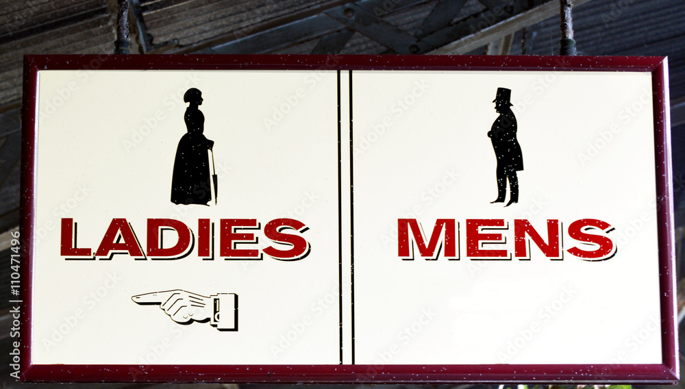Ladies and Mens restrooms sign