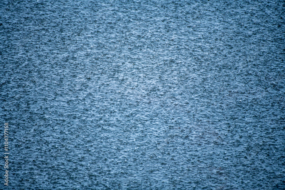Raining. Rain drop. Raining time. Falling raindrops. Water background. Water surface. Water surface background. Raindrops background. Water drop splash. Abstract shape out of the raindrops.