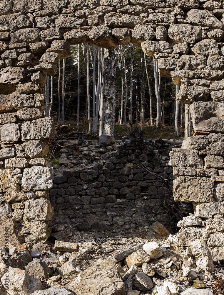 Demolished rock wall
