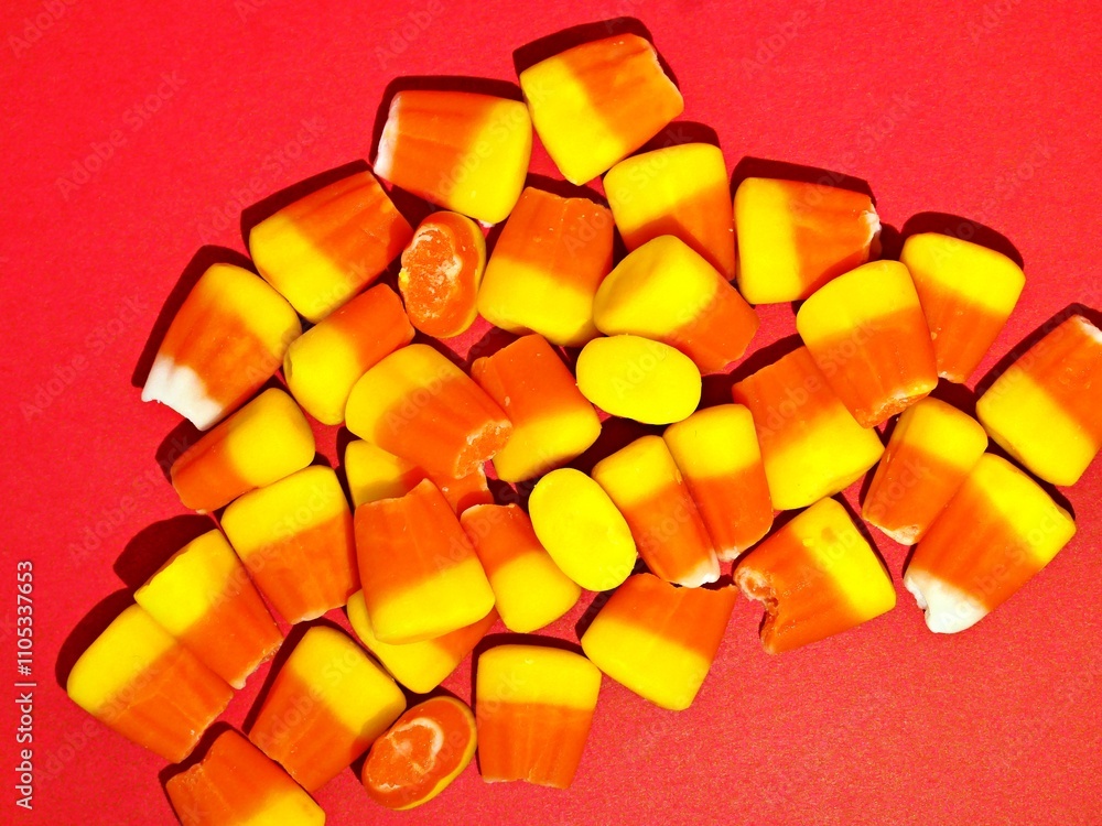 A closeup on a big stack of yummy candy corn