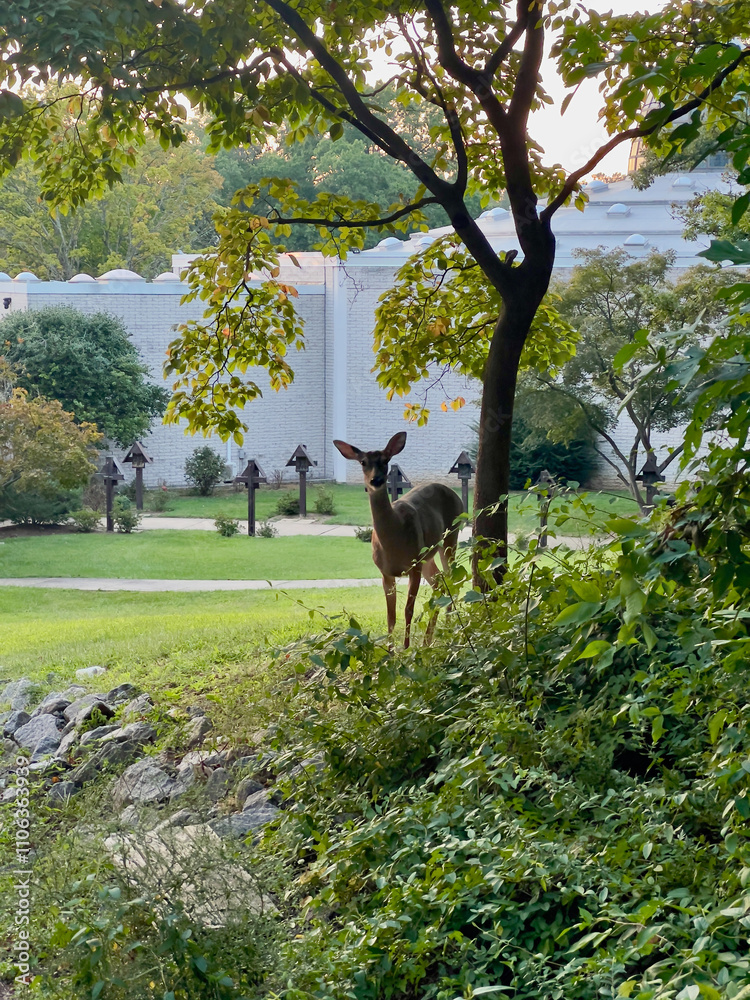 A wild fawn appeared at a church in the city
