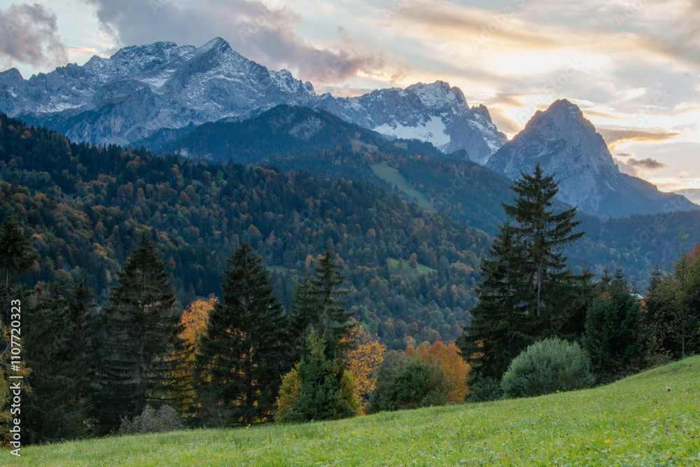 Folgende Fotos können Ihr Interesse wecken: berg, wiese, bavaria, alpine, wald, herbst, abend