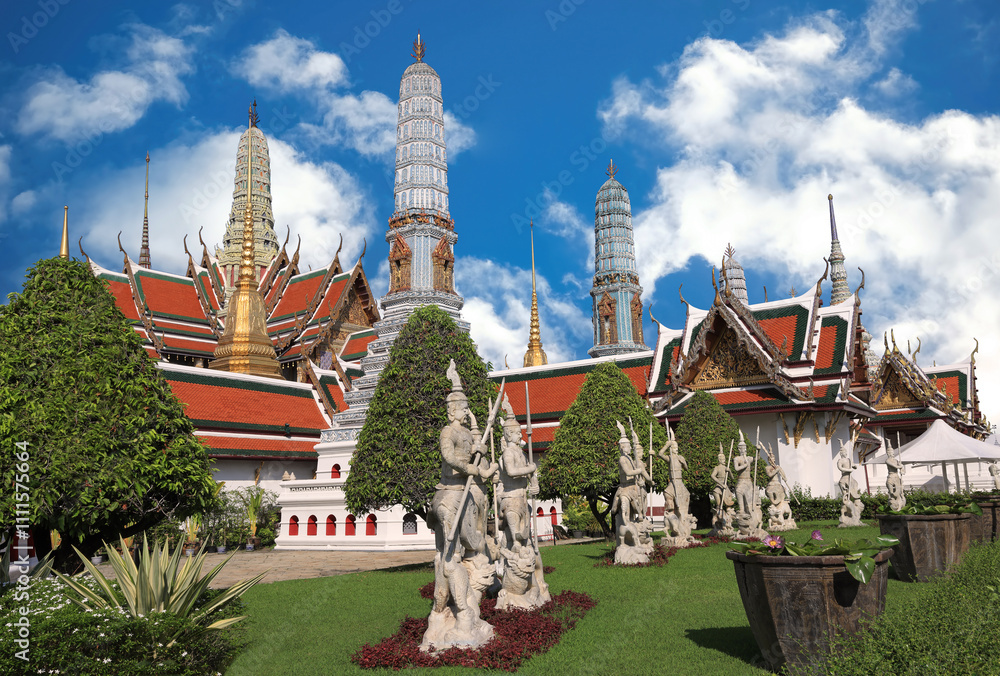 Wat Phra Kaew (The Temple of the Emerald Buddha) in Bangkok, Thailand is a sacred temple and it's a part of the Thai Grand Palace, the Temple houses an ancient Emerald Buddha